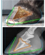 - Orange line = close side of hoof capsule. If it is dark at the bottom of the heel, it means that the hoof wall is too porous to show up on the radiograph.